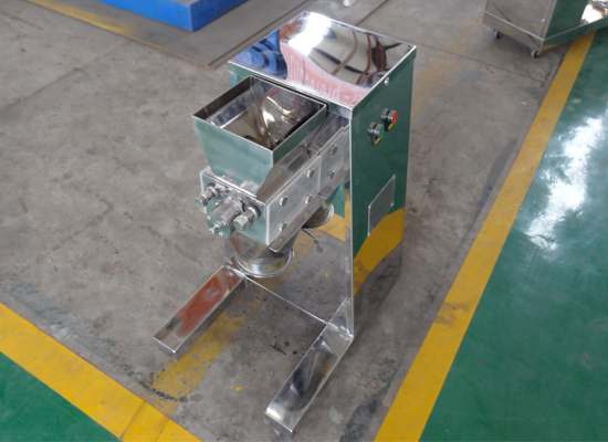 搖擺式顆粒機運行時,加料理和篩網位置的松緊直接影響制得顆粒的質量。加料斗中加料量多而篩網夾得比較松時,由于滾筒旋轉時能增加軟材通過篩網的次數,均能使得的顆粒堅硬。