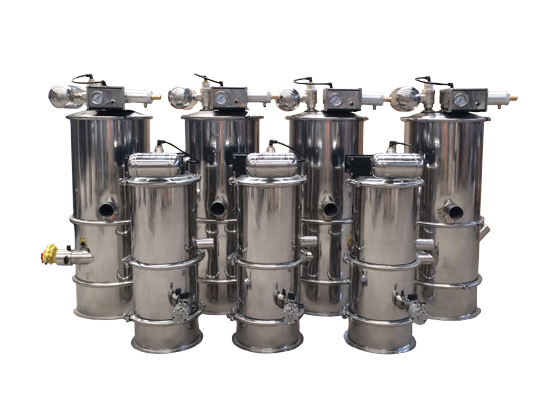 真空加料機由真空泵(無油、無水)、真空料斗、過濾器(有聚酯覆膜過濾器、PE過濾器、316L不銹鋼過濾器或鈦金屬過濾器多種選擇)、壓縮空氣反吹裝置、氣動放料門裝置、料位自動控制裝置、不銹鋼吸料咀、輸送軟管等組成,整套系統設計合理、制造精美。