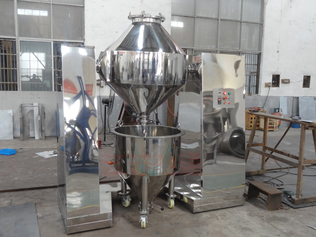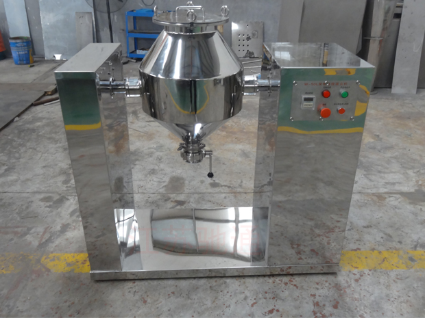 W型雙錐混合機由雙錐筒、機械密封、機架、減速傳動、攪拌葉片等構成。該機的工作過程是:把需混合的幾種物料通過真空輸送或人工加料投放到雙錐體內,上好筒蓋,開起設備,雙錐筒及攪拌葉片同時轉動,旋轉的雙錐筒使筒體內物料產生紊亂翻滾混合,高速旋轉的攪拌葉片打碎結團物料,使物料在筒體內快速混合。W型雙錐混料機工作過程無死角,無沉積,可使混合的物料快速達到均勻一致的效果。