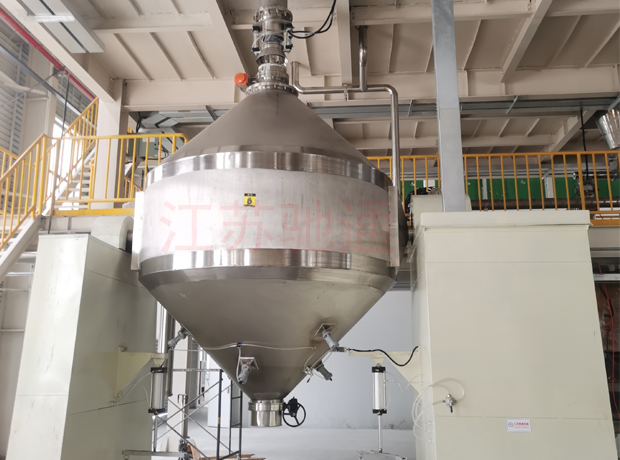 (三)雙錐筒進料口采用快開旋開閥,出料口采用大口徑90°旋閥,使用特別方便。